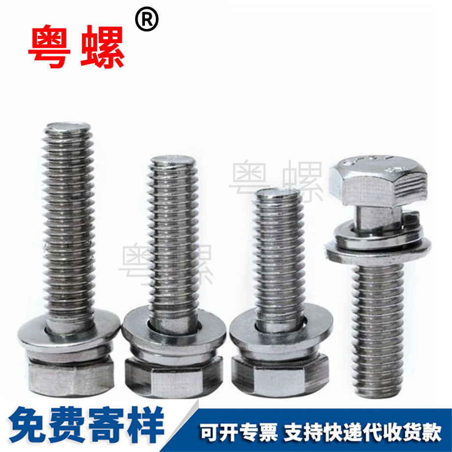 一個螺釘只配一個彈墊或只配一個平墊,或者還可以只配一個花齒的二組合件。組合螺釘國標號用GB9074表示。常用的十字槽小盤頭三組合螺釘國標號是GB9074.8。